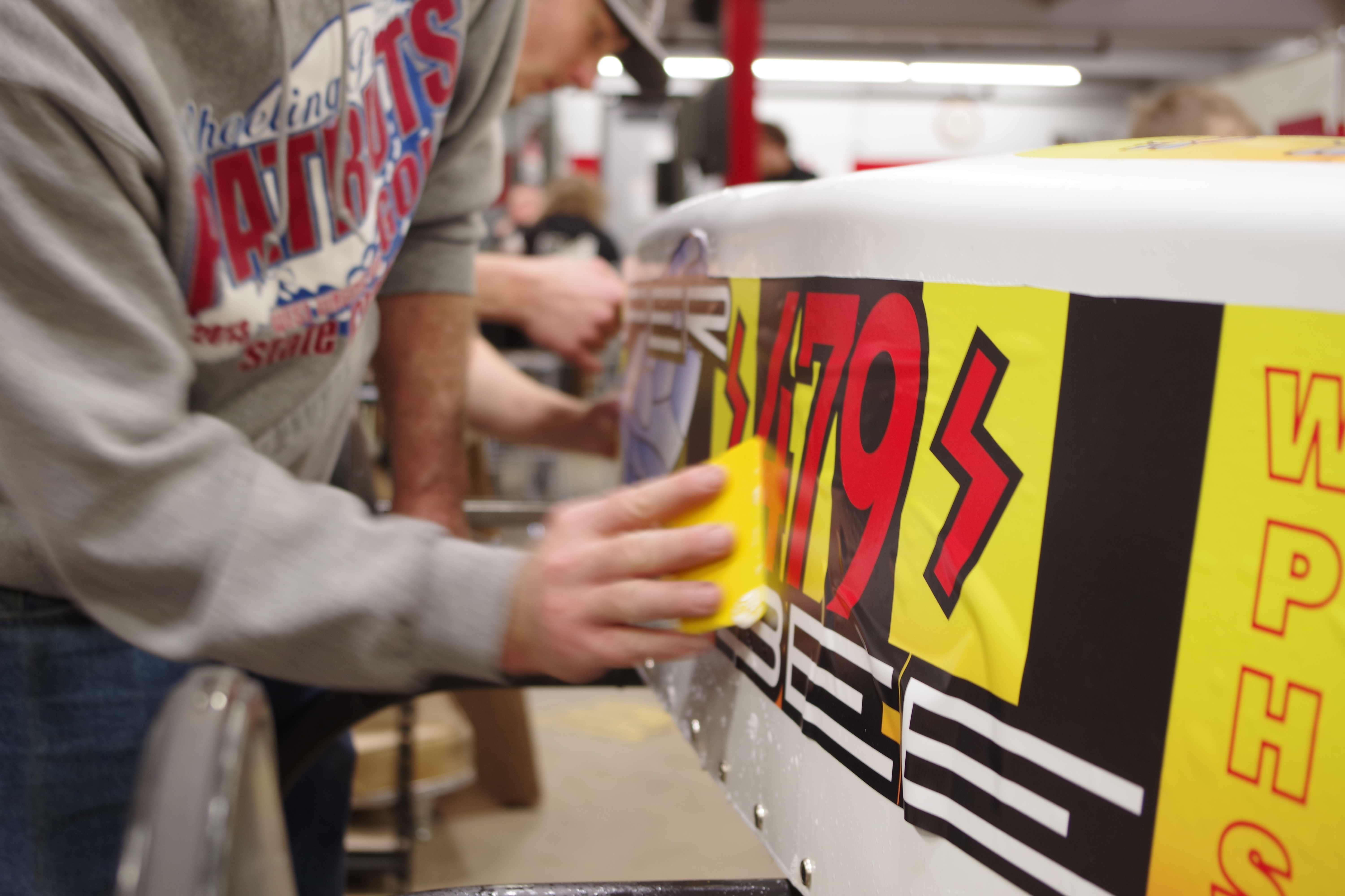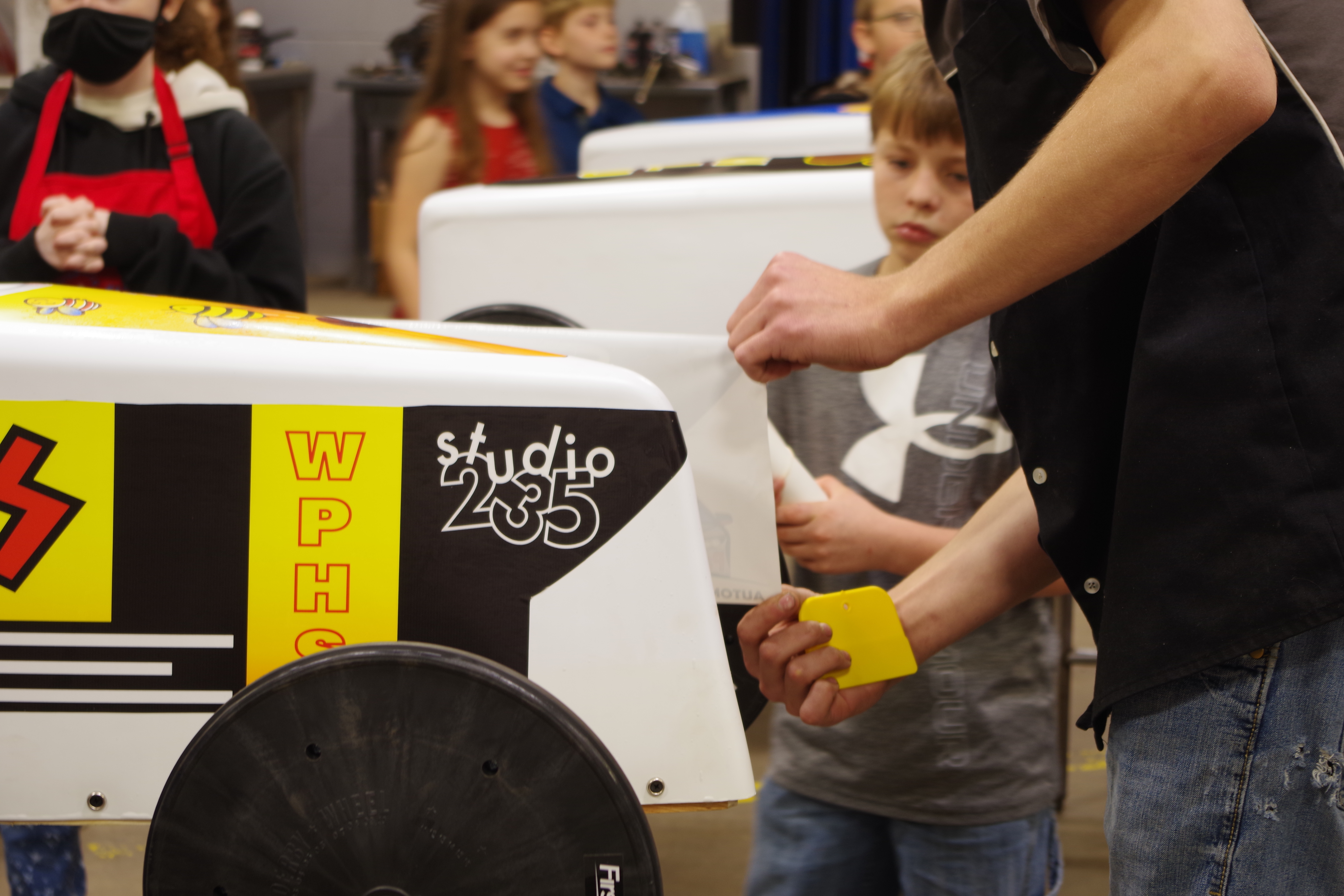WLE students along with Studio 235 designers and Patriot Garage students all worked together to apply the final designs to the cars that WLE students custom built along with the help of Patriot Garage!